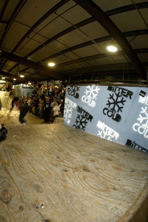 One week until the 2008 Bittercold Showdown seems like a good time to check out some pics from last year’s event. Tomorrow we’ll post an interview with event founder Daniel Kinney to discuss all the details for this year’s event, but for now check this out. Your man Brad Magnuson with his trademark True Soul down the big box at Vertigo (R.I.P.).