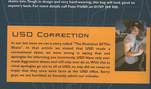 Well, to be as clear as possible on that, I will simply put it as honestly as I possibly can — if The Conference is generating and maintaining sales in the US, a potential budget grows. As that budget grows, the opportunities will be abundent, and things can be done. Quite simply, if you ain’t got it going on, you can not advertise as such. If you don’t believe me, ask all of the companies that have gone under; great ads, no future. Big hype, no content. “Good intentions,” no plan of action. Being honest as I always am, you may see some rollerblaing companies die this year, as they do every year for exactly the same reasons. As Forrest Gump would say “It’s a skater sickness.” All kinds of great marketing savvy, no plan to cover the costs of it. I mean, really, some of the media itself is to blame. Again, “good intentions.” I remember back in the day, skate companies paid huge amounts for ads in magazines, then you would see a full page poop-butt ad for some new “clothing brand” or “curb wax” or “innovative” wheel brand, and we would think “Damn, where did they get the money for that?” Well, the mags were giving “newcomer butt buddy” discounts, and shortly thereafter these “wonderbrands” were dead and buried. But I guess since they are “keeping it real” it is ok. As I have said many times before, don’t believe the hype. I am all for “skater owned,” but really, take off the packaging and have a real hard look at the content before you drink the Kool-Aid. Damn, again on the ranting. I promised myself I wouldn’t do this. So, back to answering the question. If I do my job right and the team I have behind me does as well, we should be looking good in the ad catagory in the future.