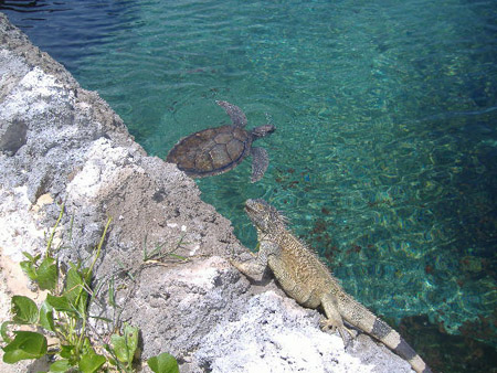 Friday July 27th: We got started around 11:00am and since it was crazy hot we said F–skating ‘till the afternoon. Instead we went out exploring the island. The first stop we made was a little cove on the west side of the island that provided some wicked views of the west coast, along with the opportunity to take some pictures of the ocean, beach, fish, etc. Then we headed to Cayman’s very own Turtle Farm which Ross dubbed Turtle Town! It’s a breeding ground for endangered species of turtles where you can feed them, pick them up, take pictures with them, and also swim with them. They also have a man-made salt water lagoon and a predator tank with sharks and whatnot. Once again JonJon kept looking at the lovely assortment of female flesh, but did nothing about it.