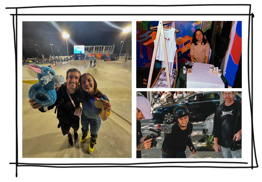These are important moments in my career and feature people who support me. They are: When I became world champion; set up at my clothing brand’s first booth; and filming my pro model video.