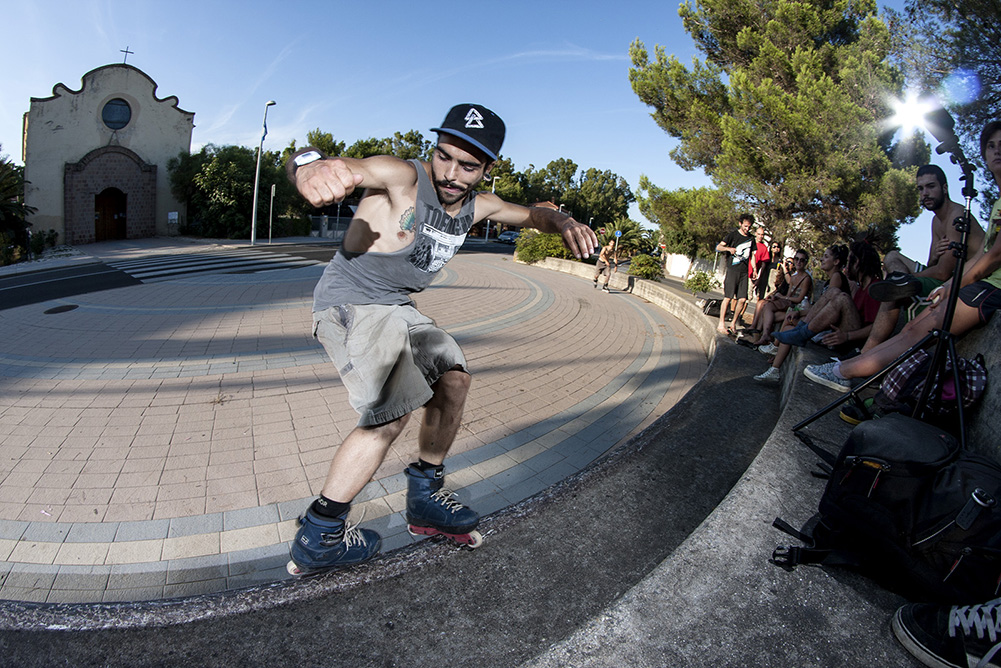 During my 13 years of rollerblading the Sardinian scene — specifically in Cagliari — has changed many times. In fact I have countless memories about the aggressive scene here from even before my career. You see, back in 1995 and 2000 rollers were cool, and all the local teenagers used to go crazy for “Roces Majestic” and Rollerblade “Chocolates”! It was cool also adding a home-made soul plate by breaking a piece of chair from the bus and glueing it under the boot. There were bladers on the road, around the squares, near the shops — everywhere! But unfortunately around 2000 skateboarding became more popular and then rollerblading became a minority.