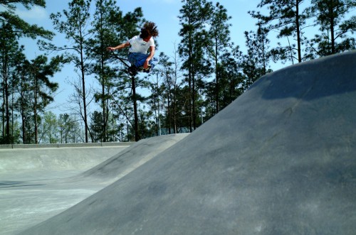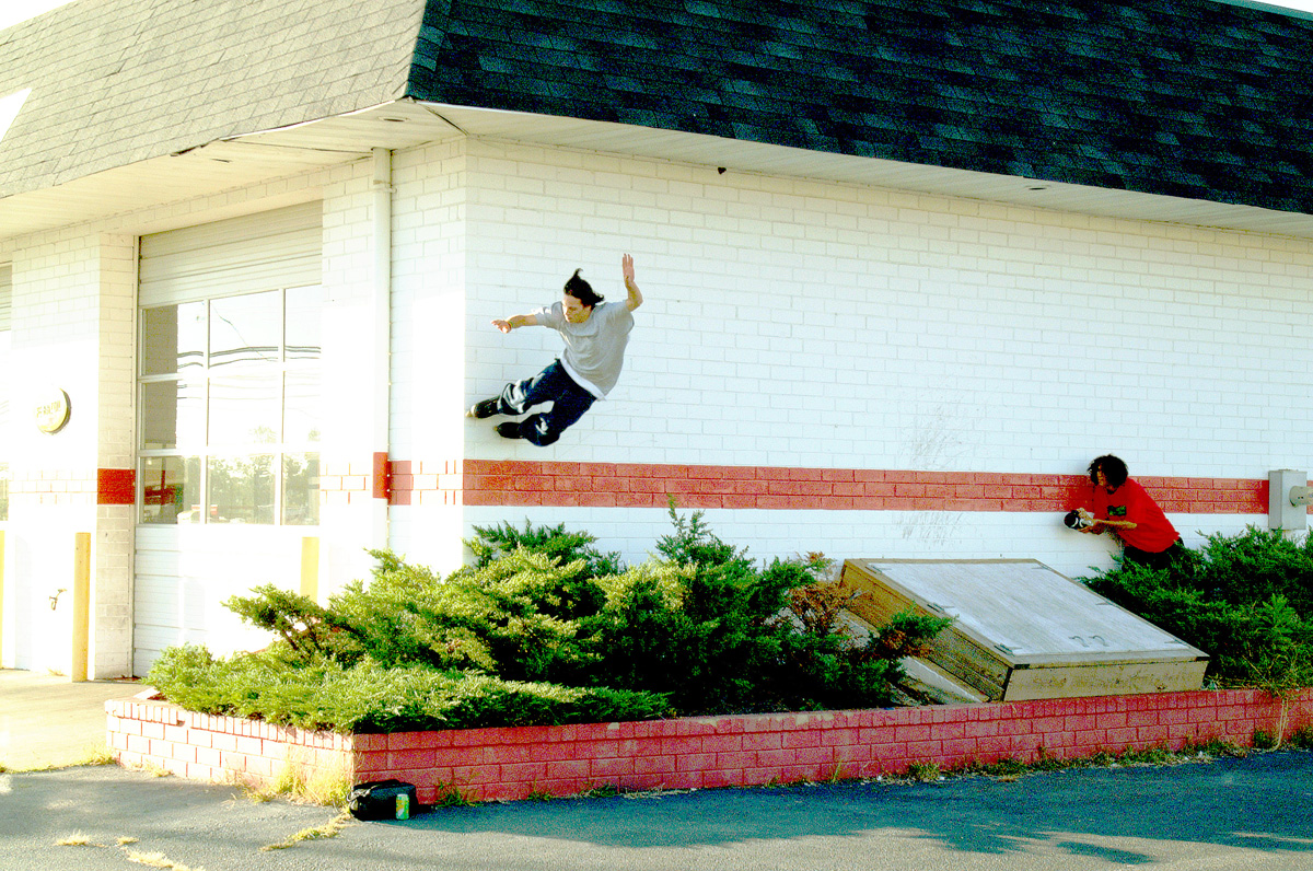 On a trip to Atlanta we crossed paths with Chris Lapenta and sessioned one of the parks, and no, I can’t remember which one this is. (ATL people please tell us in the comments.) Here he boosts a parallel that grab 180 with his signature style in 2003.