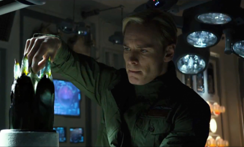 The Black Goo — Is just fucking weird. It does so many different things to various organisms in the film. Ridley himself calls it “galloping DNA” but what’s so weird is that we see this stuff in so many variations. The control panel David touches. The canisters. The capsules inside the canisters. The cocktail our Engineer papa drinks at the beginning of the film. Never do these flashes of the goo allow us to make a set of logical deductions about its properties or intentions. All we know is black goo “makes things change.” And that the results of whatever these things change into has the ability to put a fagehugger inside a human.