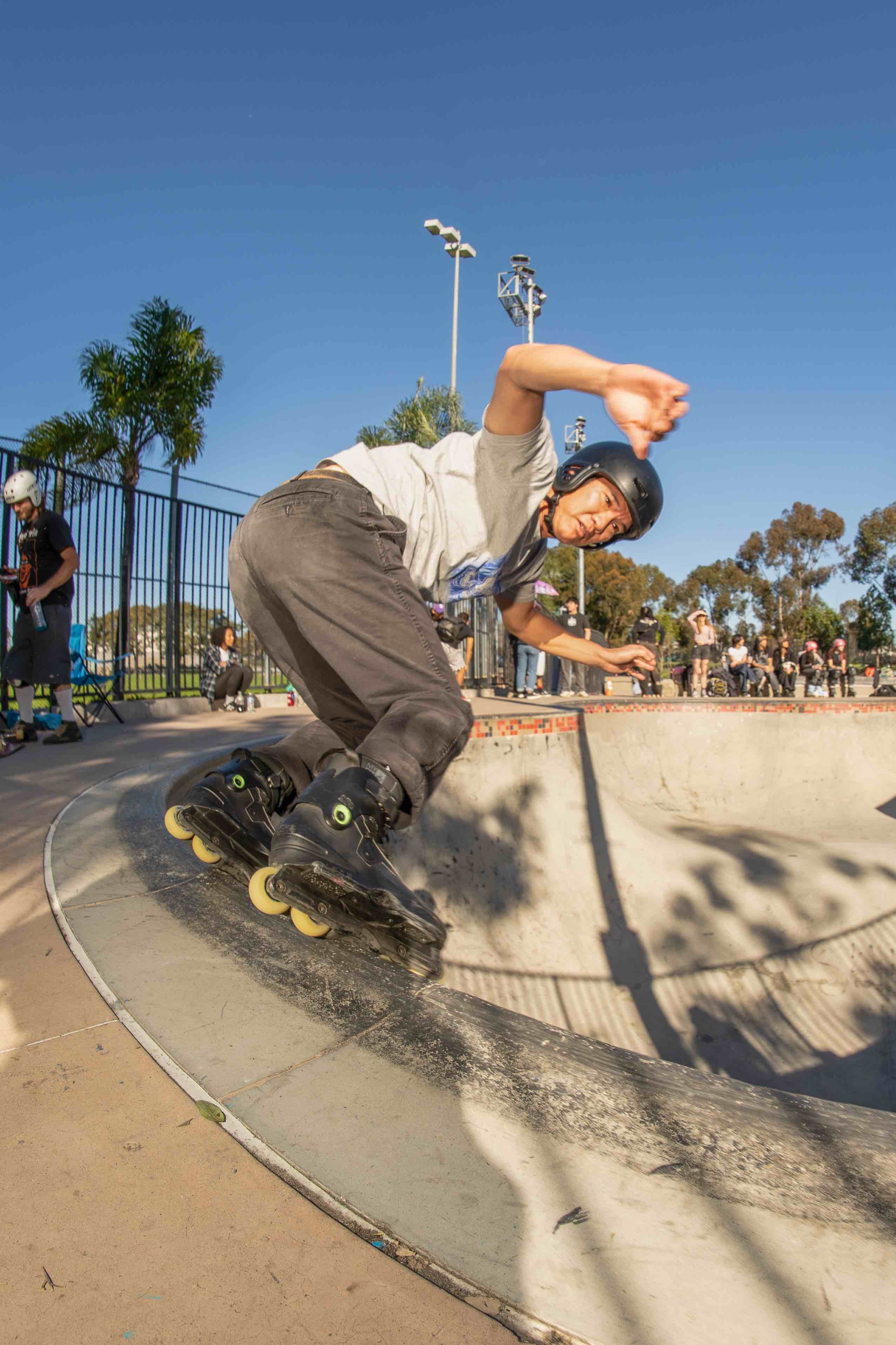 Opie Tran, a staple of the San Diego blading scene, laced up between runs to revisit his grinds after a two-month hiatus due to a sprained knee. Welcome back, Opie—heal up soon.