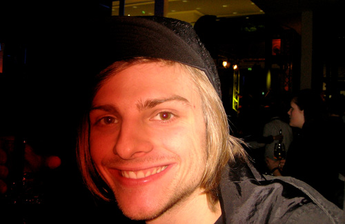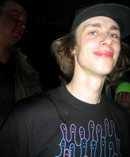 Now this IS Alex Broskow, doing the sat-down, freak-out dance with Oli Short at an ISPO after-party.