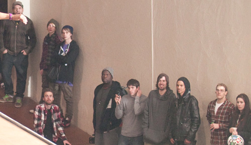 Pic # 2 ” A bunch of the younger dudes checkin out the new Casper line at the GOST booth.”