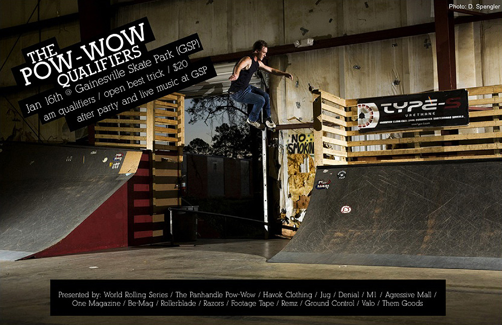 Blake Taylor (founder of the Panhandle Pow-Wow) and Geoff Valcourt (of the legendary FU Circuit) have created a qualifier event for the upcoming 2010 Panhandle Pow-Wow. The event is designed for area Ams to skate for a chance to pre-qualify for the 2010 Pro Event. The top 5 get pre-qualification and the winner receives a cash prize. For more details check the web site and flyer. — ONE