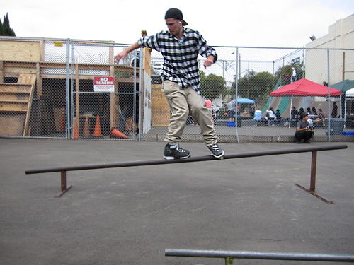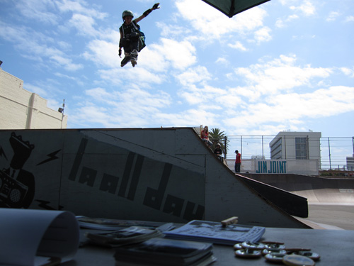 The second event of the 2009 LA All Day series went down on Saturday, and it was another great day for blading in sunny Santa Monica. We’ll start at the end, when Sean Cowen, Ricky Rodriguez, Tony Rivituso and Jeremy Cloe were named the top four for the Elite division. The whole elite division ripped, but Cowen displayed his lengthly line prowess for the win with Rodriguez’s growing list of technical tricks propelling him to second. Check out these shots of some of the sights around the event, and stay tuned for additional event photos and video coming soon. — ONE
