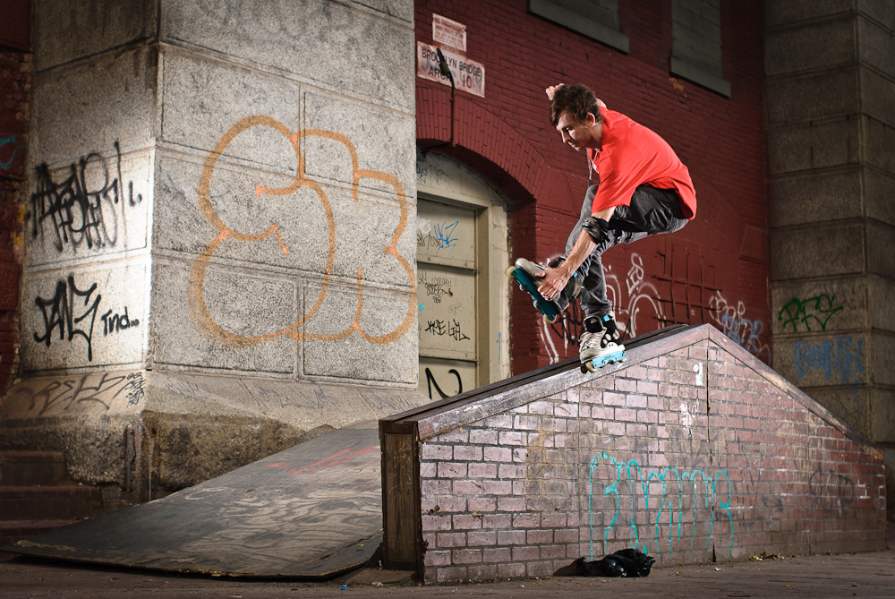 Stefan Brandow was in town for the Last Man Standing comp back in September and I wanted to get a few shots of him. Before the comp started we decided to go off to this box that they have at the banks and I told him he should try hitting it from the outside part of the angle iron. After a few tries, Stefan laced the makio straight up and down. Shot with Nikon D200|iso 200|f4|nikkor 35mm F2 ai. — Drew Humphrey