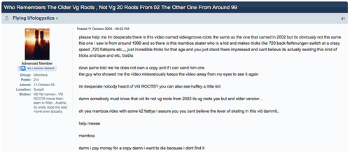 The person who lives in blading infamy, most commonly known as “Mamba,” has been searching for the mysterious video, one VG filmmaker Dave Paine doesn’t even knows exists. But, fellow bladers, do not be swayed by imitation VG Roots, such as the VG20 Roots you can easily rent from NetFlix.